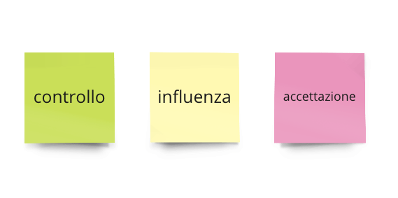 Una volta completato il processo di divergenza e quindi aver usato la parte di Template, ci sarà quello di convergenza in cui si deciderà quali impedimenti vorremo affrontare nel prossimo sprint, e prima di questo è importante capire quali sono le attività che rientrano nella nostra sfera di controllo e influenza: quindi è il momento di colorare o segnare i post-it che ricadono in queste aree, perché sono gli unici sui quali potremmo intervenire.
